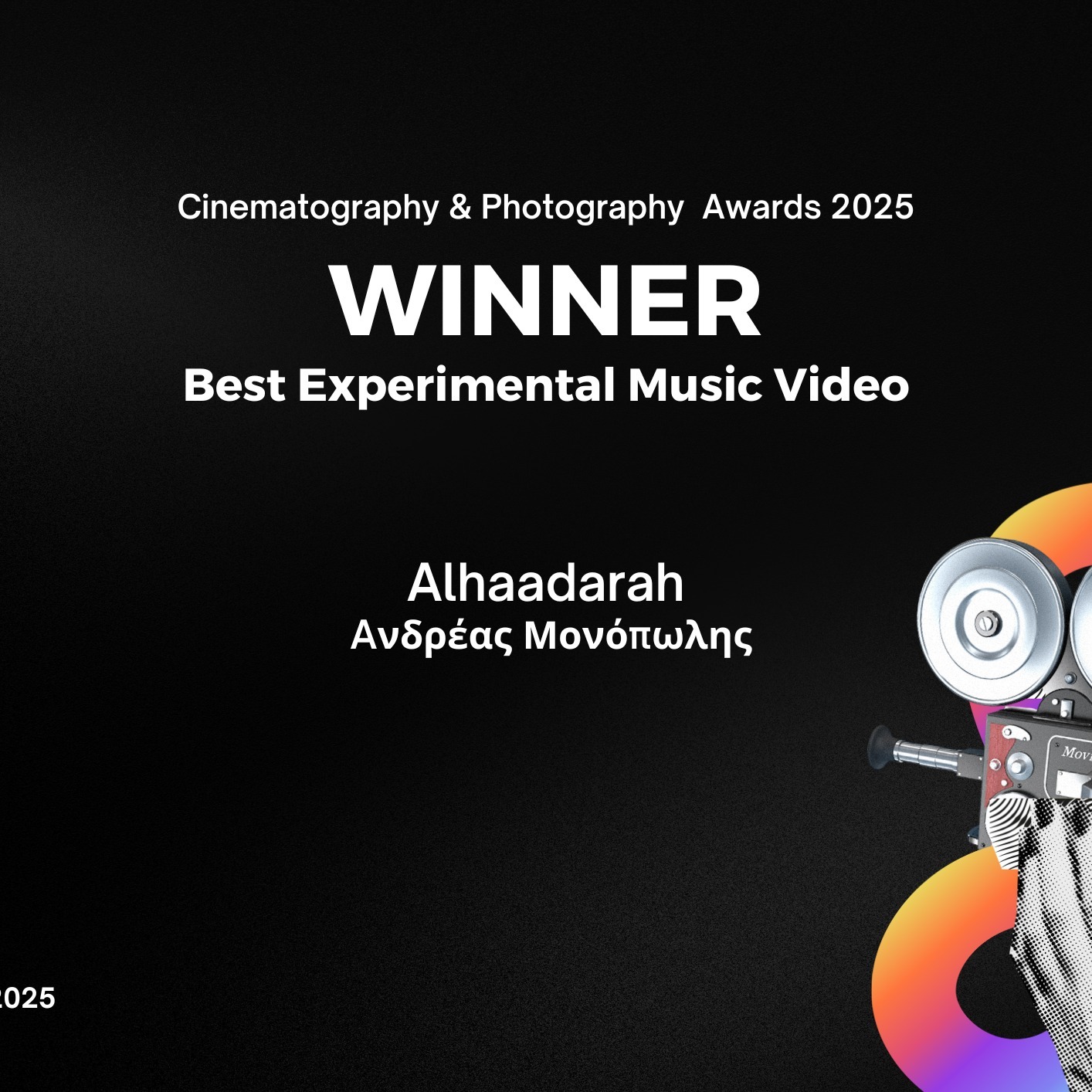 Best Experimental Music Video Aword winner 2025.